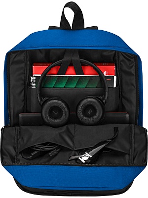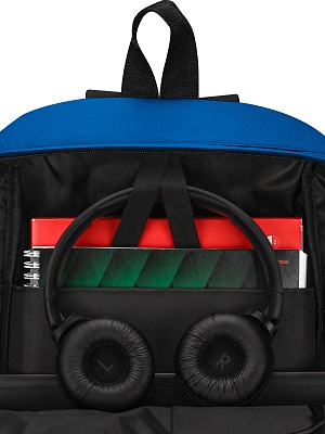 Рюкзак, внутренние карманы, наружный карман на молнии, цвет синий с черным RK-21_2, 430х280х120мм