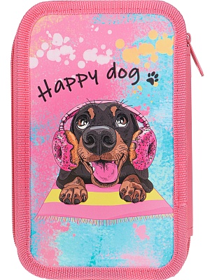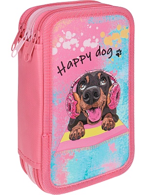 Пенал 3 отделения печать на картоне "Счастливый пес" PN-CD009_19, 190х115х60мм