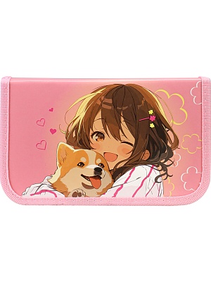 Пенал 1 отделение печать на картоне "Девочка и корги" PN-CD003_14, 190*115*25мм