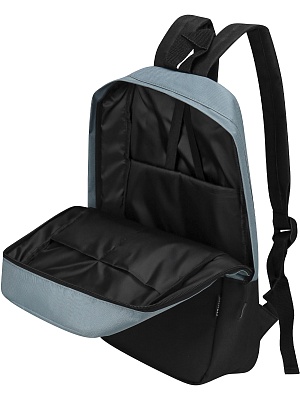 Рюкзак, внутренние карманы, наружный карман на молнии, цвет серый с черным RK-21, 430х280х120мм